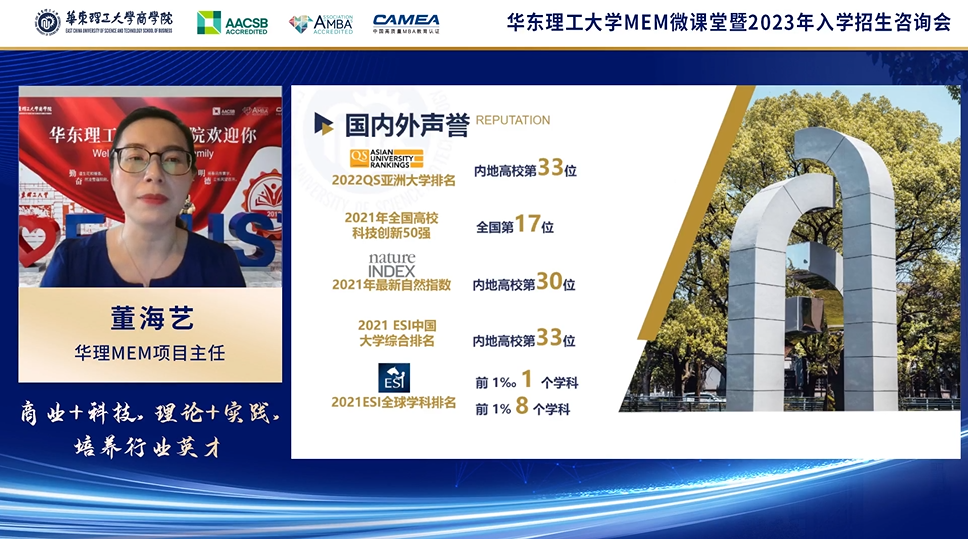 华东理工大学MEM项目主任董海艺老师