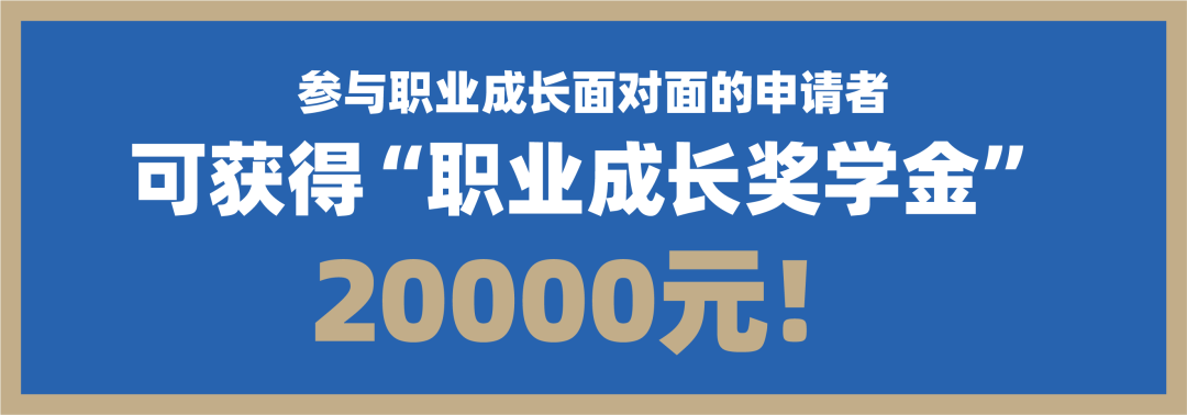 “职业成长营”分为申请人“背景审核”和“职业成长面对面”两个部分,提前获得职业指导和高额奖学金。