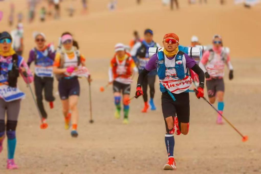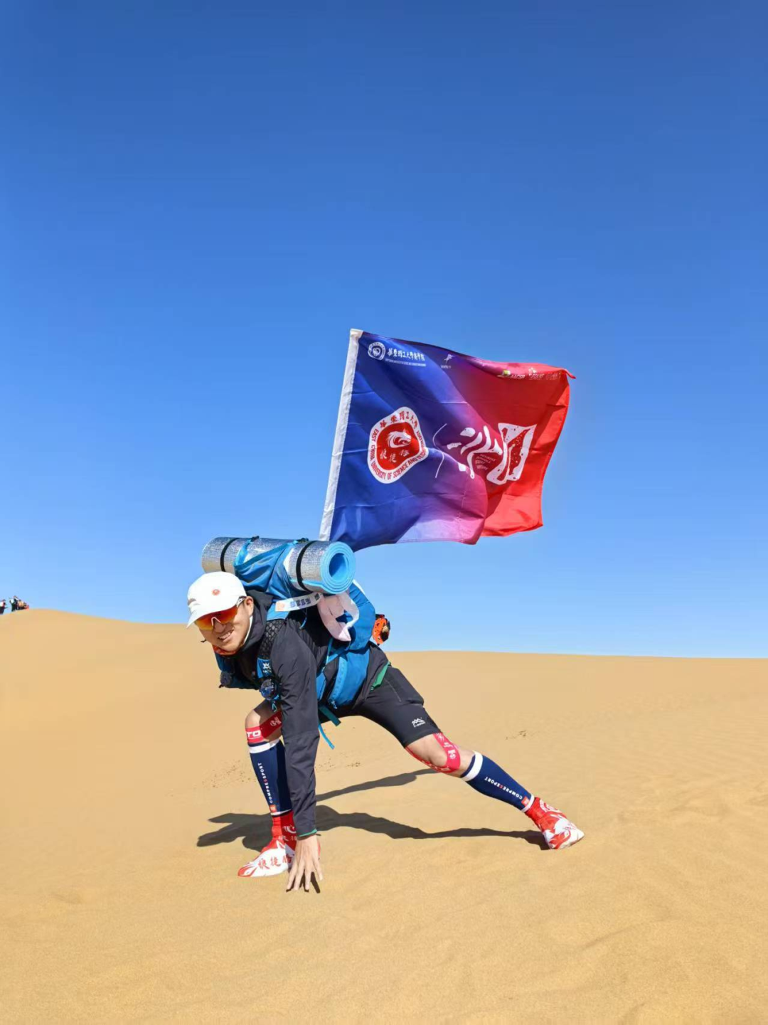 然而,第一天的大风却给了我们一个下马威。为了抢占先机,我拼命向前冲,急促的喘息声中,伴随着突如其来的岔气。我捂着胸口,顶着狂风,紧跟鹏队的脚步。我看见鹏队在风沙中坚定的背影,那抹身影如同灯塔。二十公里前后,抽筋如影随形,其实每个人都在与身体的极限抗争。我捶打着抽筋的大腿,一步一步,终于冲过了终点。那一刻,所有的疲惫与委屈在队医垒哥温暖的搀扶和专业的拉伸中,化作了无尽的感激。第一天男子第55名的成绩我不是很满意,我暗自发誓,第二天一定要取得更好的成绩。