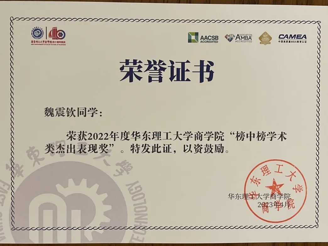华理MEM项目部积极鼓励学生参与各类学术竞赛,以赛促教、以赛促学。2022年度,华理MEM学生积极参加各类学术竞赛,并在多项赛事中荣获佳绩!