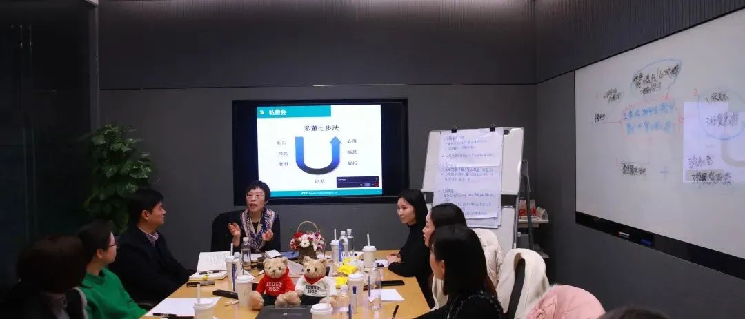本次线下活动别开生面地选择了一位学生作为“案主”,由房老师带领小组学生运用“私董会”的工具来解决学生职业发展问题,聚焦于长期职业规划展开充分的探讨。通过“私董会”躬问、探究、澄明、定见、解析、精思、心得的“七步法”,大家集思广益,全面思考了“案主”在职业发展上面临的一系列具有普遍意义的问题。