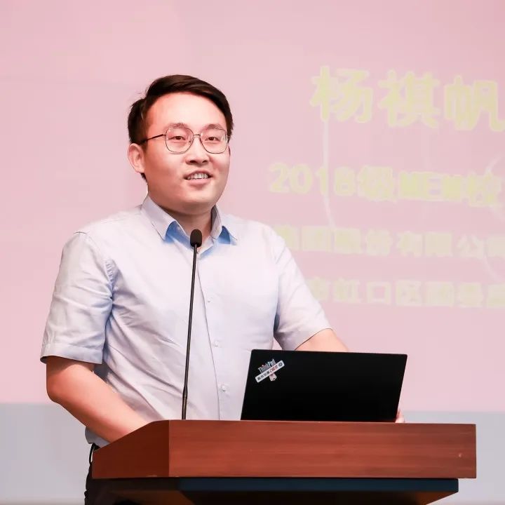 随后,来自上海建工集团的校友代表杨祺帆学长分享了他在华理的“吃玩学”,讲述在华理中成长,在华理中突破。杨学长给新生提出了宝贵的建议:主动寻找资源,善于时间管理;不断超越自己,遇见未知的自己。