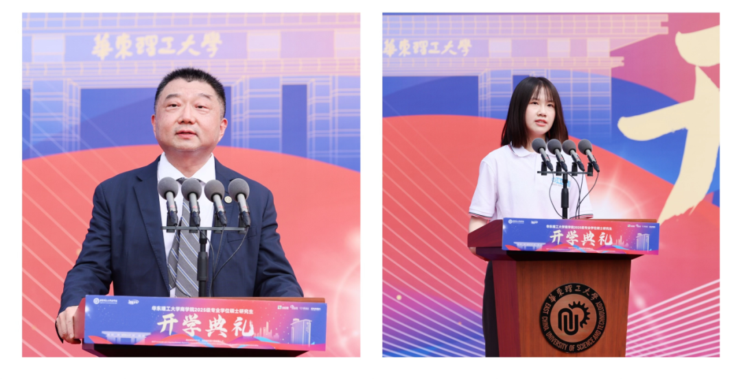 校长助理、研究生院院长杜文莉回顾了华东理工大学自发展研究生教育以来的深厚积淀,提出“以勤学为楫、以创新为翼、以明德为灯”的三重寄语,勉励新同学既要夯实专业、勇于实践,也要修身立人、恪守学术诚信、涵养社会责任,在华理这片沃土上成长为兼具智慧光芒与道德温度的卓越人才。